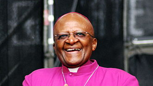 Billedet: Desmond Tutu, ærkebiskop i Sydafrika. Tutus visionære arbejde med og for forsoning mellem bødler og ofre har inspireret til forsoningsprocessen efter folkemordet i Rwanda.