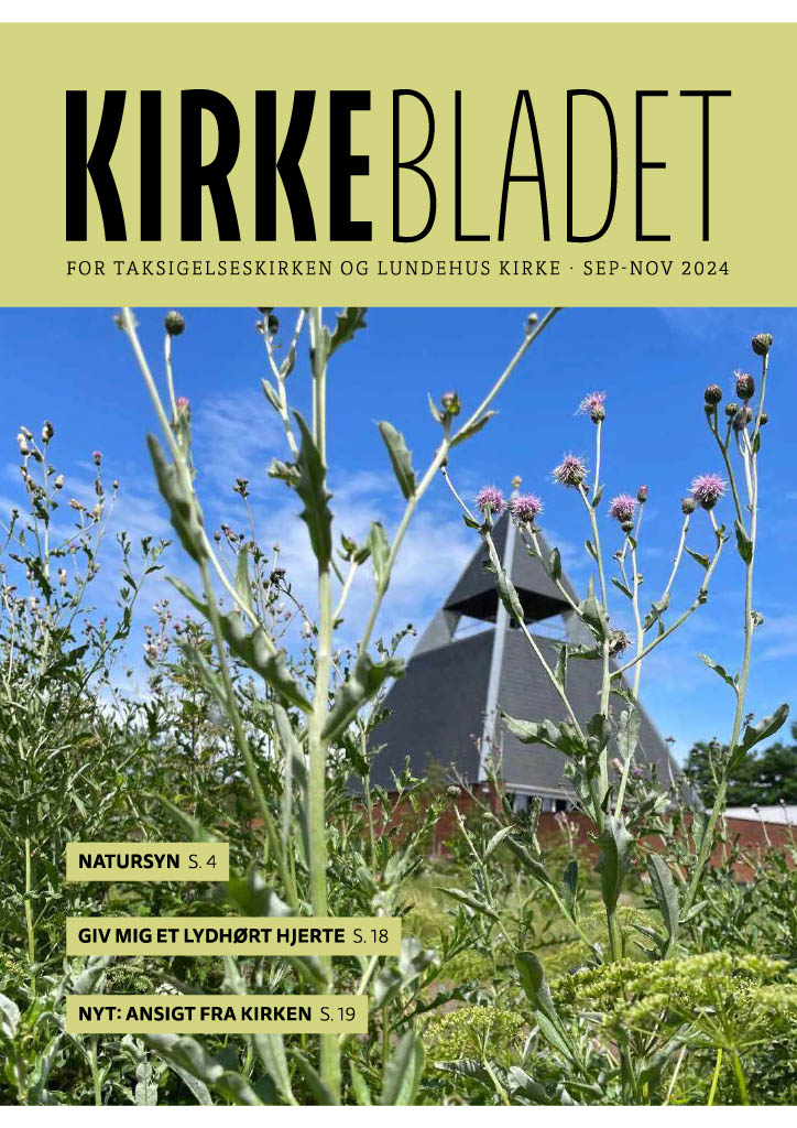 Klik på billedet for at læse det seneste kirkeblad. Fra september 2024 er kirkebladet fælles for Lundehus Kirke og Taksigelseskirken.